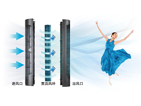 创新运用直立式贯流风叶,让送风更均匀、更顺畅、更柔和。