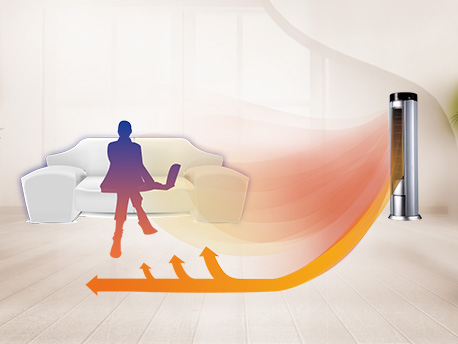 空调制热时,暖流贴着地面走,配合智能式旋转带来的大角度送风,让暖流快速覆盖整个房间,舒适暖风身边常伴。